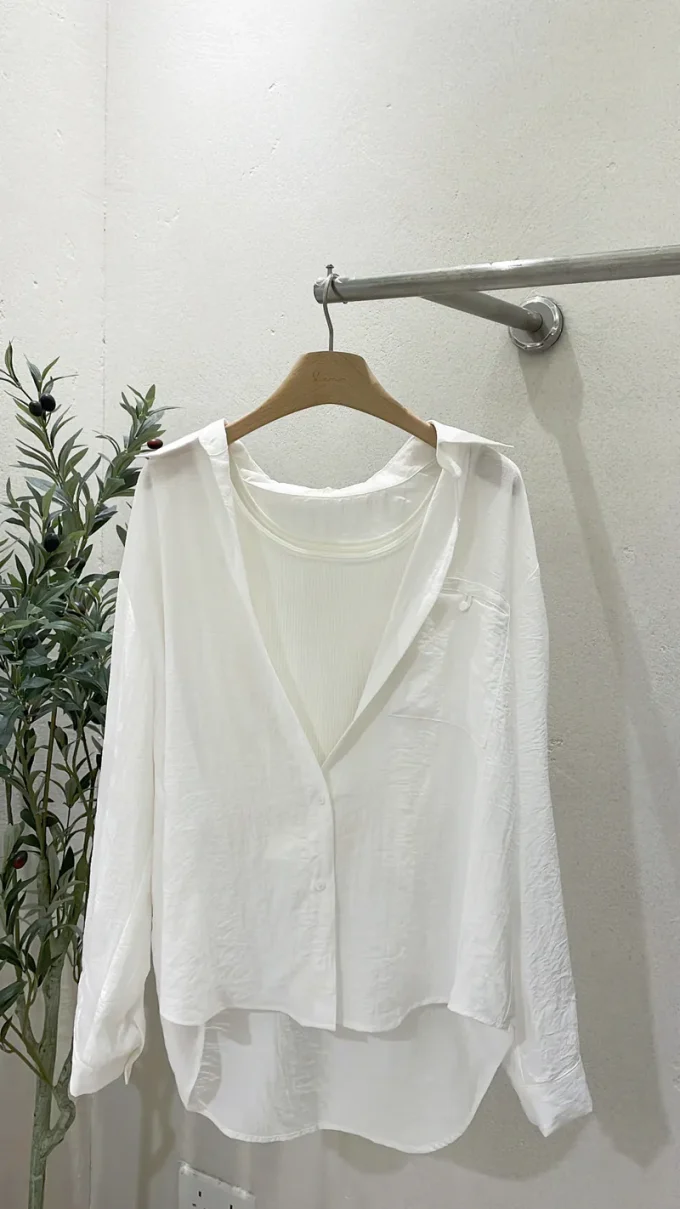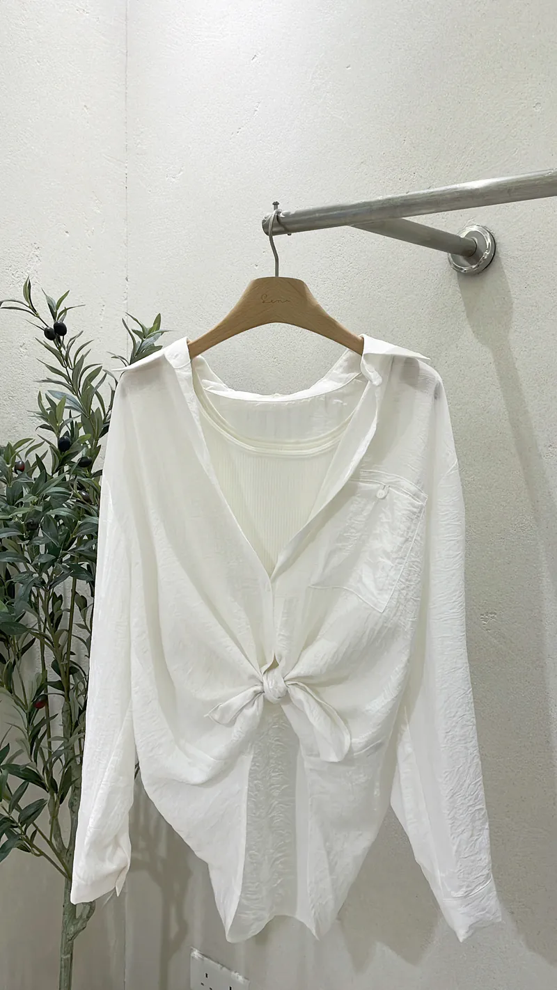 衣櫃必備的日常款襯衫 寬鬆剪裁和前短後長的設計 微落肩向下垂墜線條感 打造更多靈活不同造型! ✓ 開胸外搭穿 ✓ 扣鈕攝衫 ✓前衣擺綁紐結 更貼心配有內搭 衣料選用柔軟棉質布料 版型不挑身形 質感滿滿~